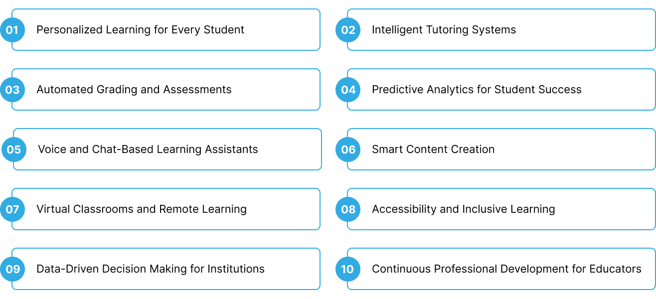 For students, AI means personalized learning support, online tutoring, and smarter exam preparation tools. For educators, it offers data-driven insights, reduced administrative burden, and the freedom to focus on teaching creatively. For institutions, it enables smarter resource allocation, predictive analytics, and better student outcomes.